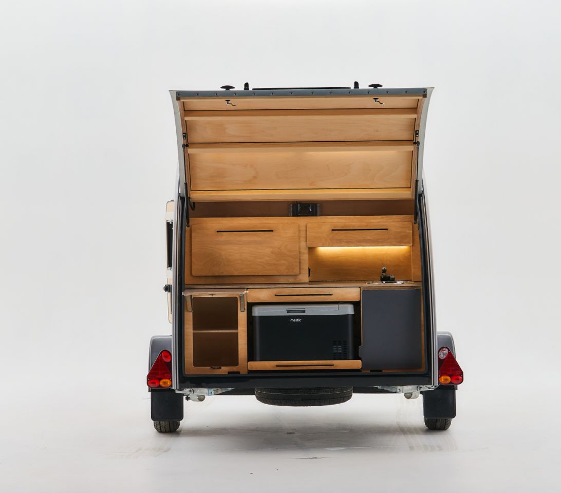 This kitchen makes the Kulba teardrop trailer a fully functional mobile home – compact, practical, and stylish.